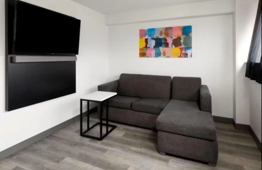 Mir hat es wirklich gefallen, dass es sehr sauber und ruhig gelegen war, das Personal war nett und die Zimmer waren groß. Es gab im Zimmer super bequeme Betten, einen Flachbildfernseher mit Kabelkanälen, einen Kühlschrank und ein Bügeleisen/Bügelbrett.